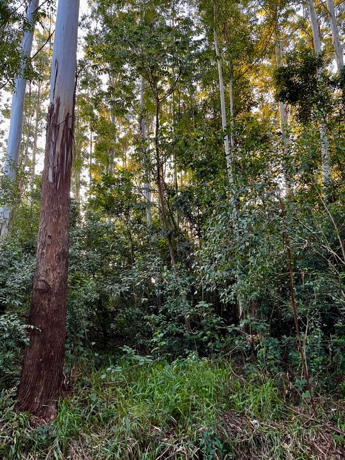 Non-harvested eucalyptus plantation in Puerto Valle in regeneration thanks to spontaneous native plants growth in progress